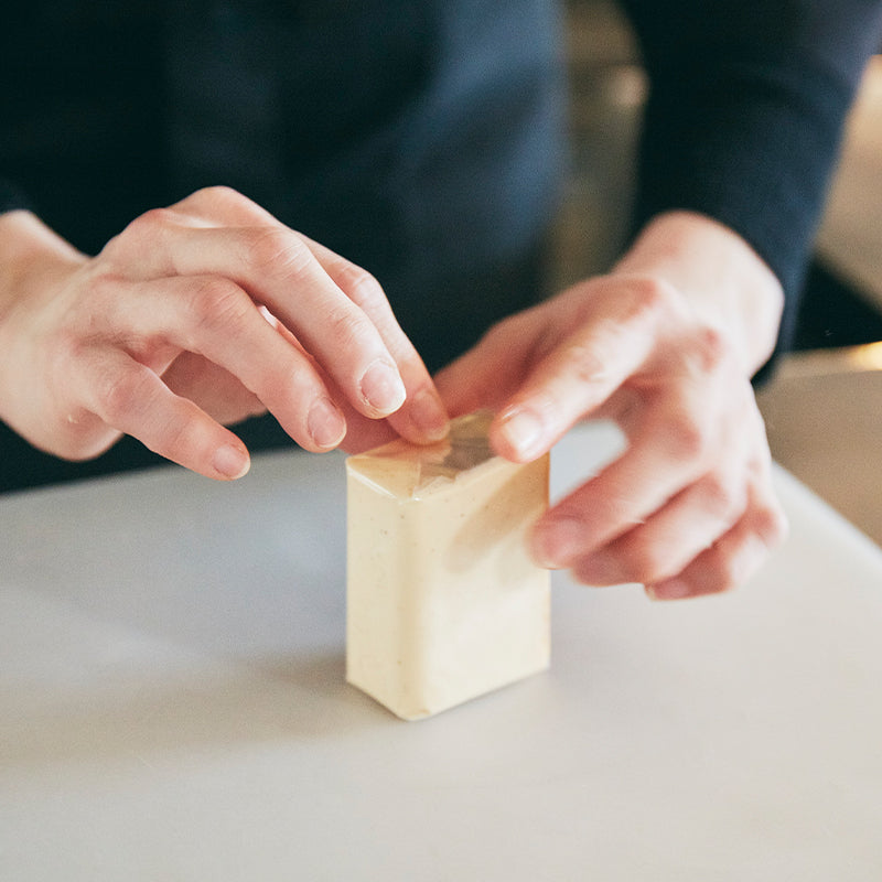 ひとつひとつ手仕事で包装されたチーズスイーツは、