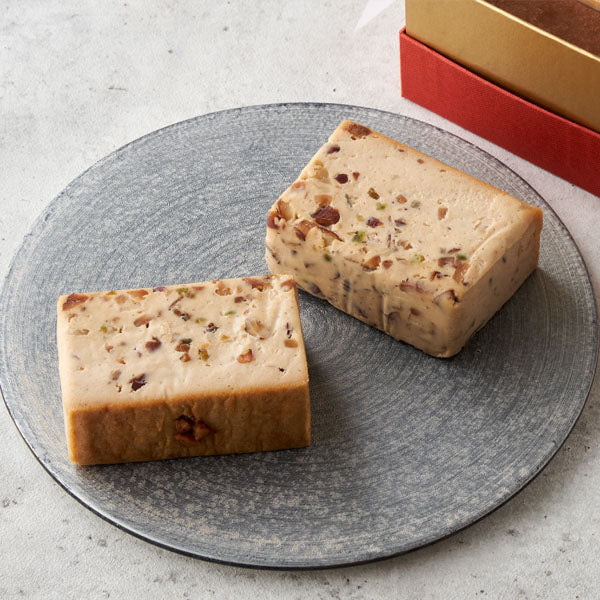 マカダミア・ピスタチオ・アーモンドの3種のミックスナッツを贅沢に使用し、チーズテリーヌの風味とも相性の良い