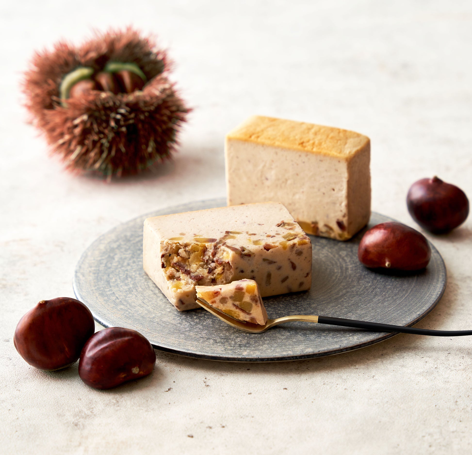 「栗本来の美味しさ」を贅沢に味わえるようにベースとなる濃厚なチーズテリーヌに独特な甘みの香り豊かな和栗をふんだんに使用した秋限定フレーバーのマロンチーズテリーヌ。