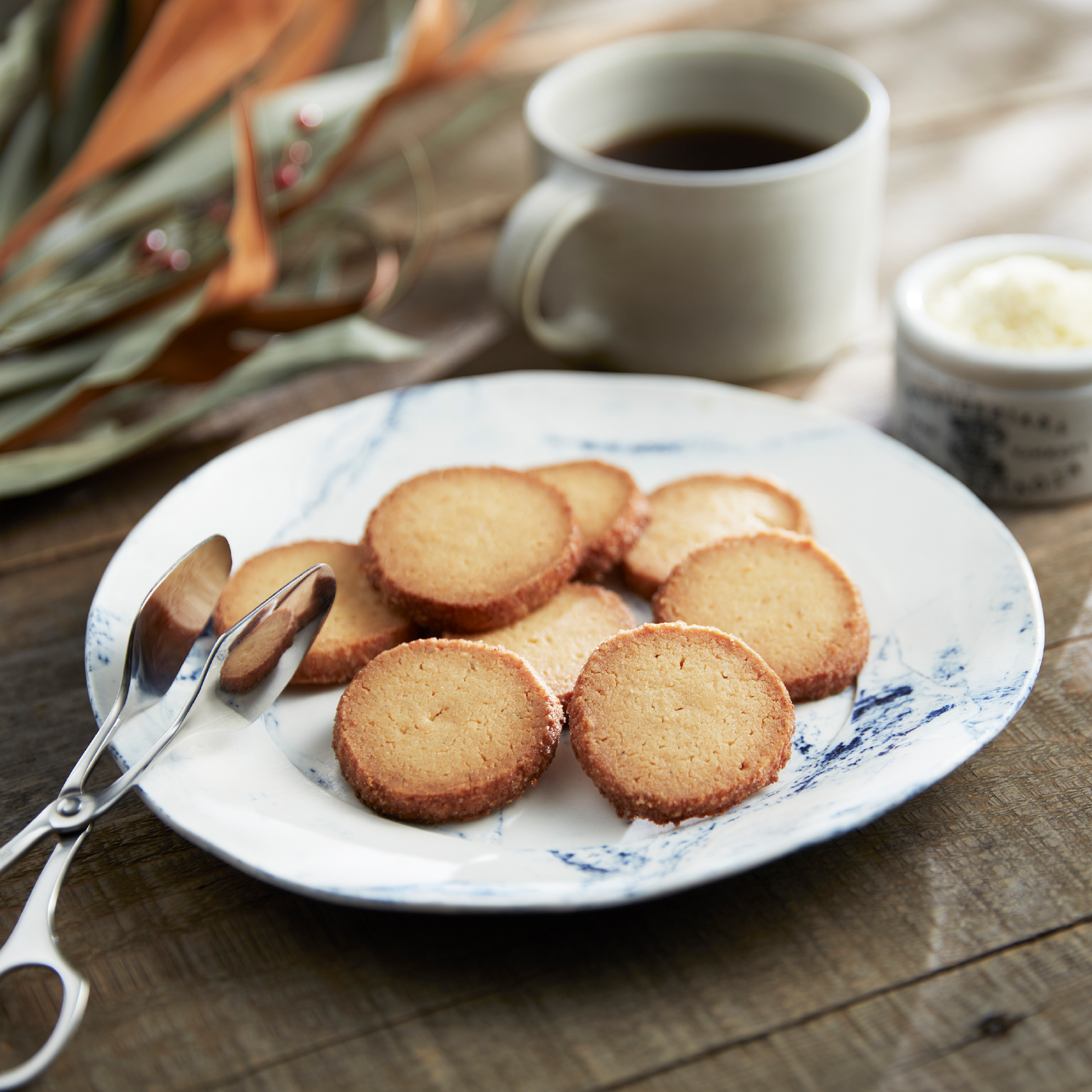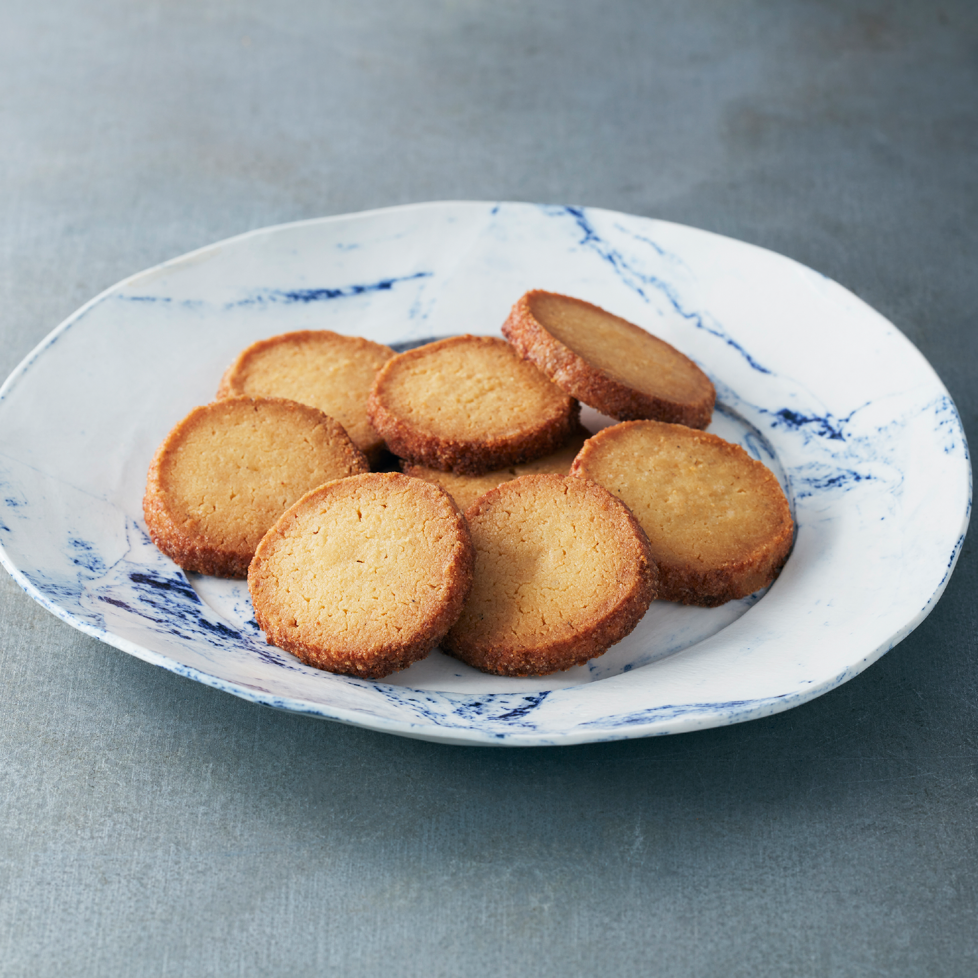 卵不使用で甘さを抑え、ローズマリーや岩塩をアクセントにした香り高く仕上げた大人クッキーです。乾燥ローズマリーたっぷり使用。香り高いクッキーに仕上がりました。ハーブクッキーはアイハグチーズパティシエ二人のオリジナルクッキーです